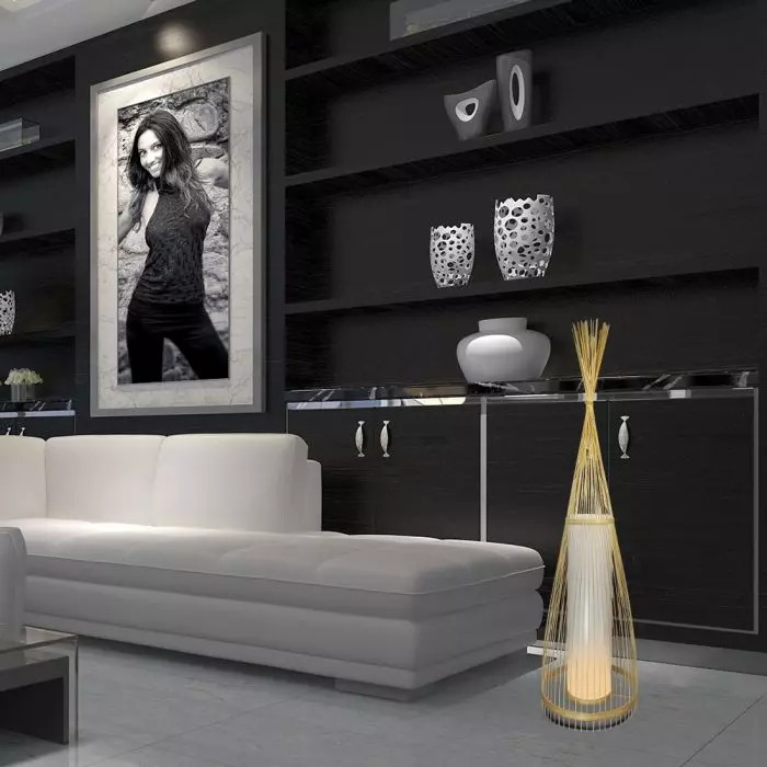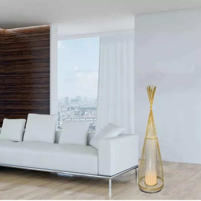 Drevené podlahové svietidlo z ratanu 94cm. Dizajnová vysoká podlahová ratanová lampa so závitom E27. Ak hľadáte pre svoje prostredie atmosférické osvetlenie s námorným kúzlom, podlahová lampa z ratanu je to pravé! Veľká lampa očarí kvalitným okrúhlym tienidlom. Pozoruhodná je aj základňa opletená prírodnom ratanom. Ratan vyzerá úžasne nadčasovo. Vďaka tomu sa dá lampa využiť v ktorejkoľvek miestnosti a ľahko kombinovať s iným nábytkom a domácimi doplnkami.