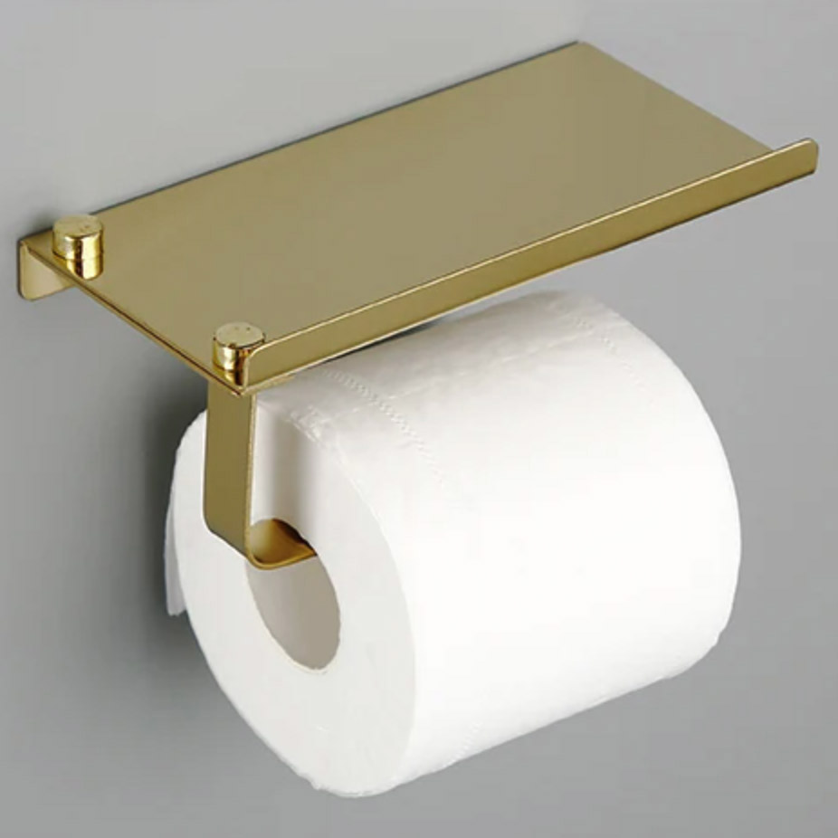 Držiak na toaletný papier v mosádznej farbe + stojan na mobilný telefón