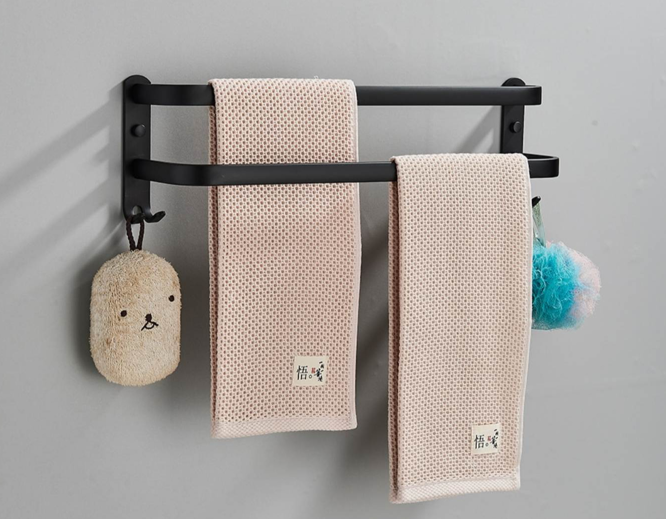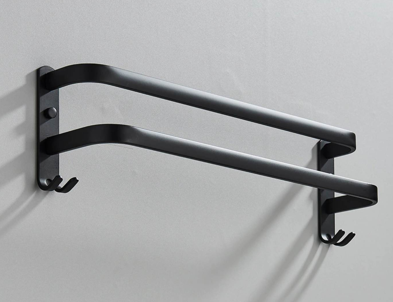 Elegantný dvojitý držiak na uteráky s čiernym povrchom