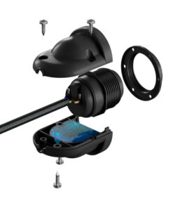 Od dnešného dňa si môžete vďaka exteriérovým objímkam vytvoriť svoju vlastnú vonkajšiu lampu. Vďaka špeciálnemu izolačnému gélu vo vnútri a hermeticky pôsobiacej membráne na žiarovke je tento držiak žiarovky schopný úplne bezpečne odolávať dažďu a búrkam.