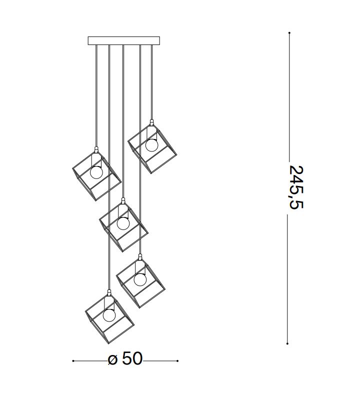 Kovový luster ICE SP5 s tienidlom v tvare kocky v matnej bielej alebo čiernej lakovanej farbe. Kovový kryt objímky žiarovky so saténovou mosadznou povrchovou úpravou.