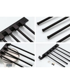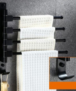 - FUNKČNÉ – vešiak sa skladá zo štyroch segmentov, z ktorých každý je vybavený ramenom, ktoré pojme záťaž 1kg, čo umožňuje usporiadať viac uterákov, oblečenia alebo iných predmetov na jednom mieste. Každé rameno je možné nezávisle otáčať o 360 stupňov, čo vám umožní jednoducho a rýchlo zmeniť polohu segmentova prispôsobiť tak vešiak vašim aktuálnym potrebám.