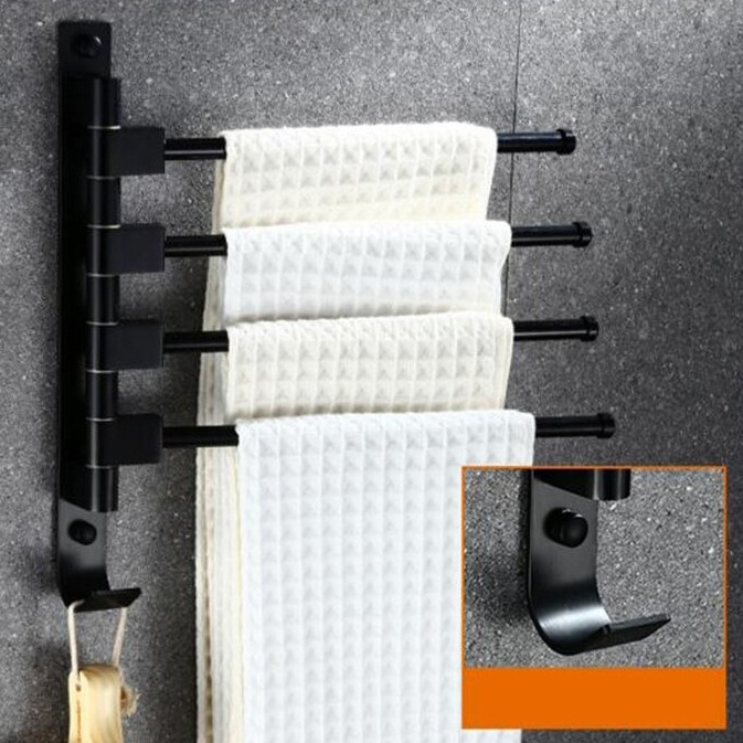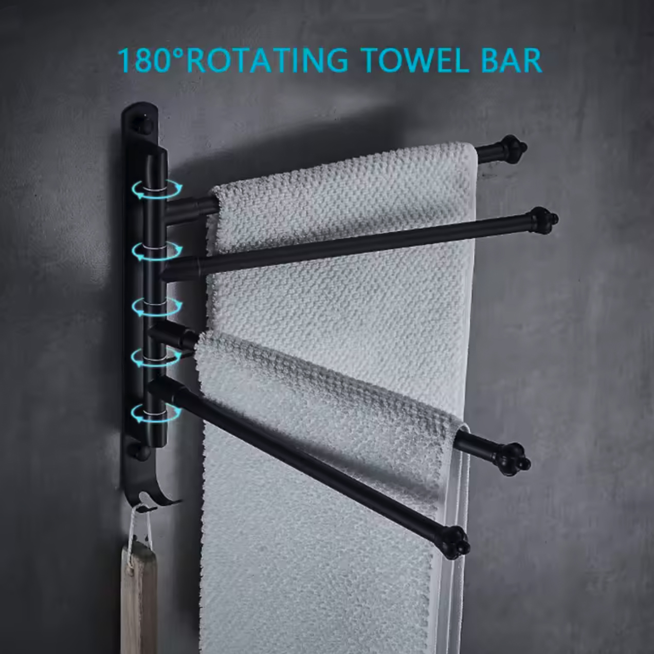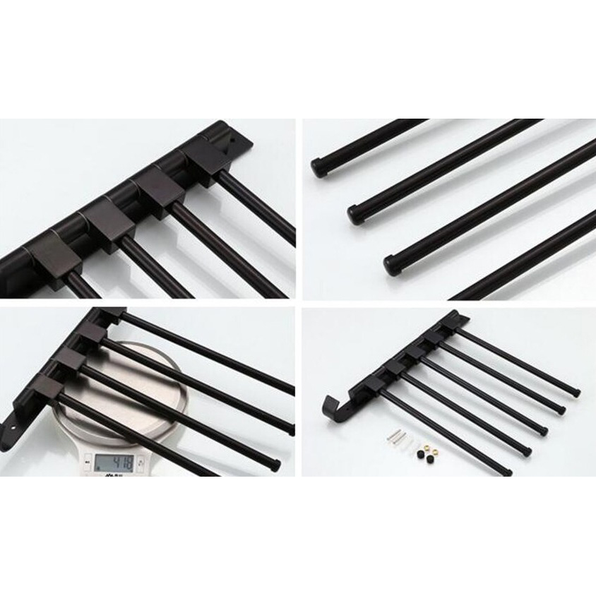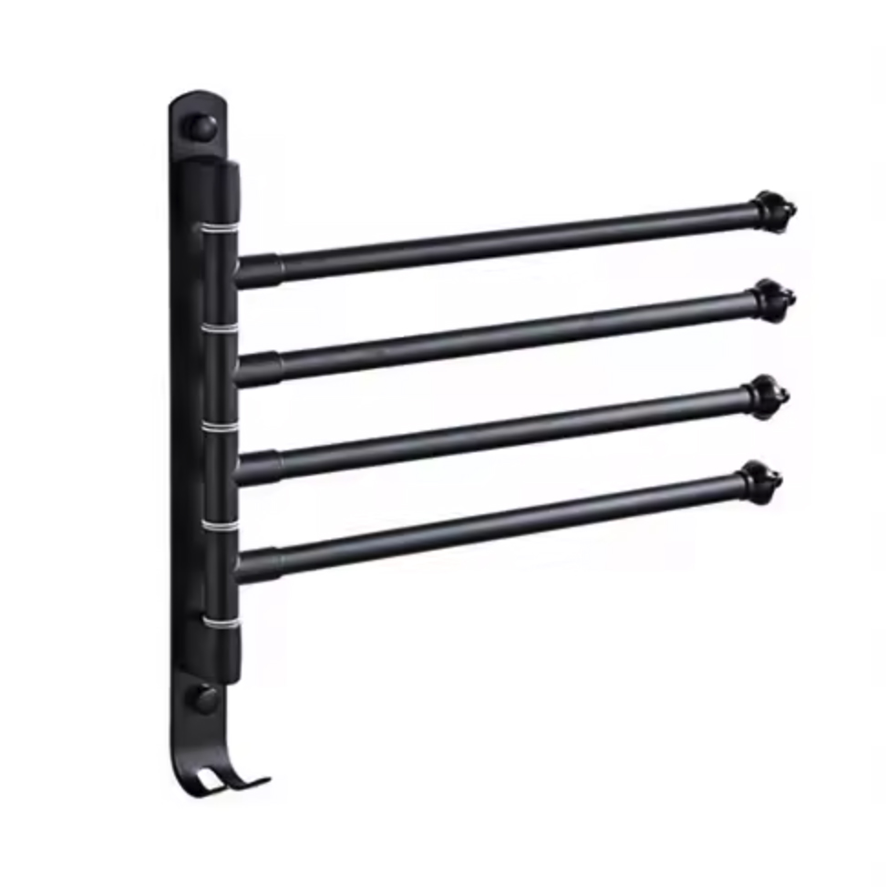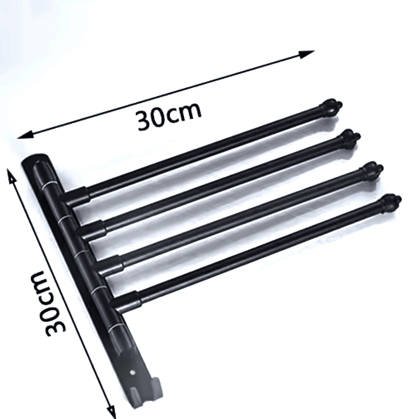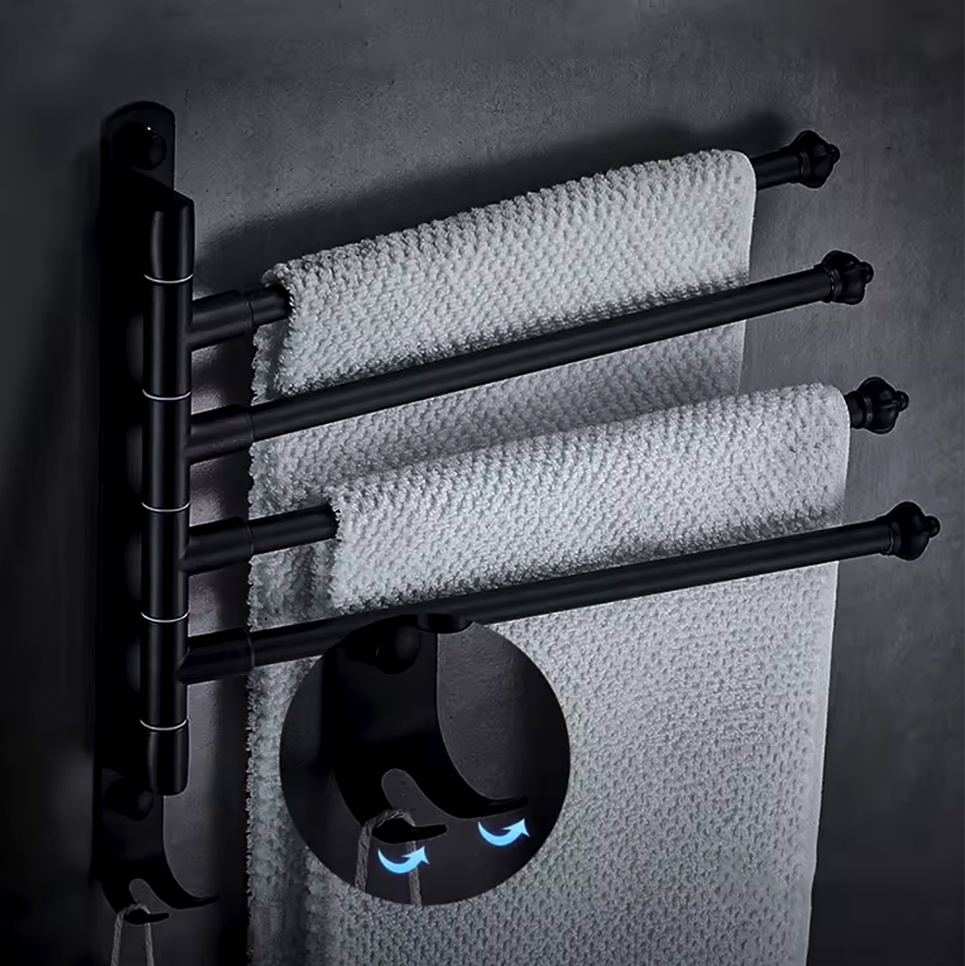 Kovový otočný vešiak na uteráky so 4 ramenami v matnej čiernej farbe s vešiakom