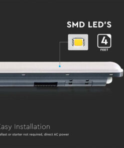 LED prachotesné svietidlo s príkonom 36W a svetelným tokom 4320lm v dĺžke 120cm Vodotesné kovanie navrhnuté s účinnosťou lumen 120LM/W. Použitie vysoko výkonnej technológie SMD, vďaka ktorej je spoľahlivejšia a odolnejšia . Vhodné pre parkoviská, sklady, garáže, skladovacie doky, dielne atď.