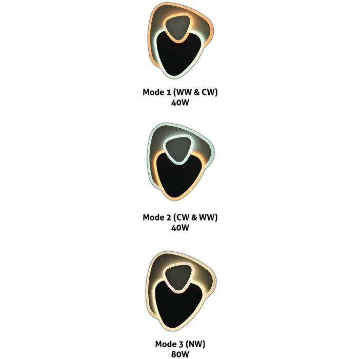 Vďaka svojmu jedinečnému tvaru vytvárajú nové dizajnové stropné svietidlá Avide Design vo vašej domácnosti jedinečný štýl. Pre každý model sú k dispozícii 3 režimy osvetlenia. V prvom a druhom režime možno na dosiahnutie rôznych svetelných efektov použiť kombináciu teplých bielych a studených bielych LED diód, zatiaľ čo tretí režim využíva kombináciu teplých bielych a studených bielych LED diód na vytvorenie prirodzenej teploty bielej farby, čím sa zdvojnásobí výkon.