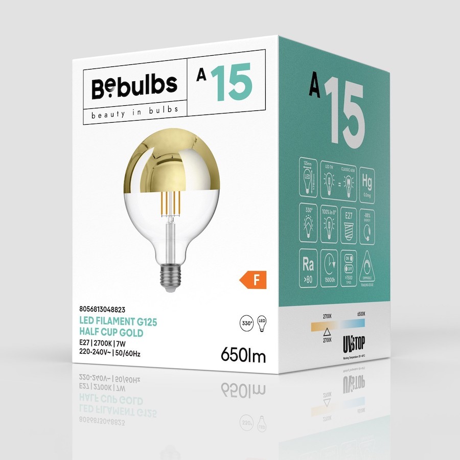 Zrkadlová dekoračná žiarovka je prekrásna moderná žiarovka obsahujúca zrkadlové sklo, ktoré vytvára jedinečné efekty na stenu. Ideálna pre otvorené svietidlá, do hotelov, reštaurácií alebo do domácnosti. Svetelný zdroj tvorí technológia Filament, ktorá poskytuje väčšiu úsporu energie ako tradičné klasické žiarovky. Priemerná životnosť 15000 hodín účinne znižuje frekvenciu výmeny žiaroviek. Svetlo, ktoré sa odráža späť od špeciálneho zrkadla vytvára mäkký a okolitý efekt. Nová LED žiarovka so zrkadlom je inovatívna žiarovka, ktorá vytvára dobrú kombináciu nových LED diód. Polovica zrkadla žiarovky odráža svetlo späť k základu žiarovky. Postriebrená Konštrukcia difúzneho skla zaručí že nebudete oslepený jasom ako pri štandardných žiarovkách.