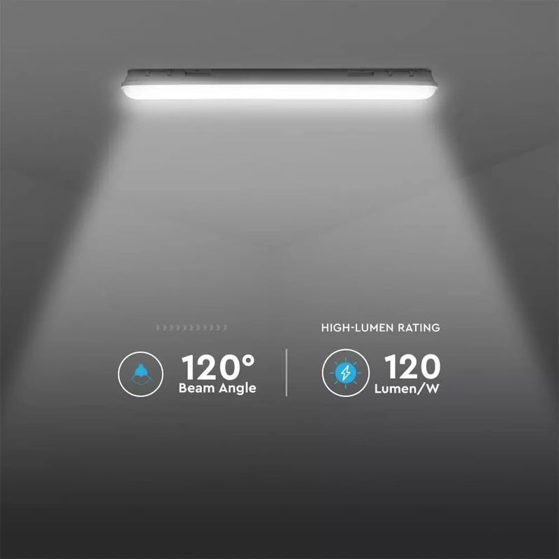 Pracovné stropné a nástenné svietidlo vhodné pre vonkajšiu inštaláciu s krytím IP65. LED stropné a nástenné svietidlo s led trubicou IP65. Svietidlo ma vysoké IP krytie a je vhodné pre vonkajšiu inštaláciu a taktiež do prašného prostredia (do haly, do výrobe, do dielne, do garáž, do pivnice…)