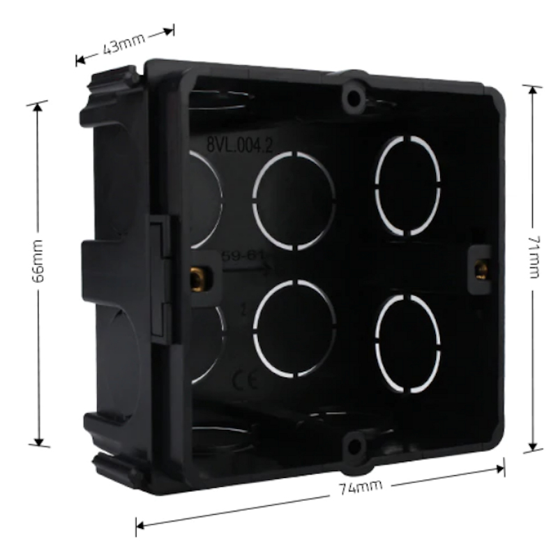 Krabica určená pre montáž pod omietku a inštaláciu dotykových vypínačov, zásuviek a ďalších komponentov LIVOLO. Spájacia krabica umožňuje jednoduché spojenie a vytvorenie potrebnej mnohonásobnosti pre inštaláciu vypínačov a zásuviek. Hranatý dizajn krabice je plne kompatibilný so všetkými komponentmi výrobcu LIVOLO.
