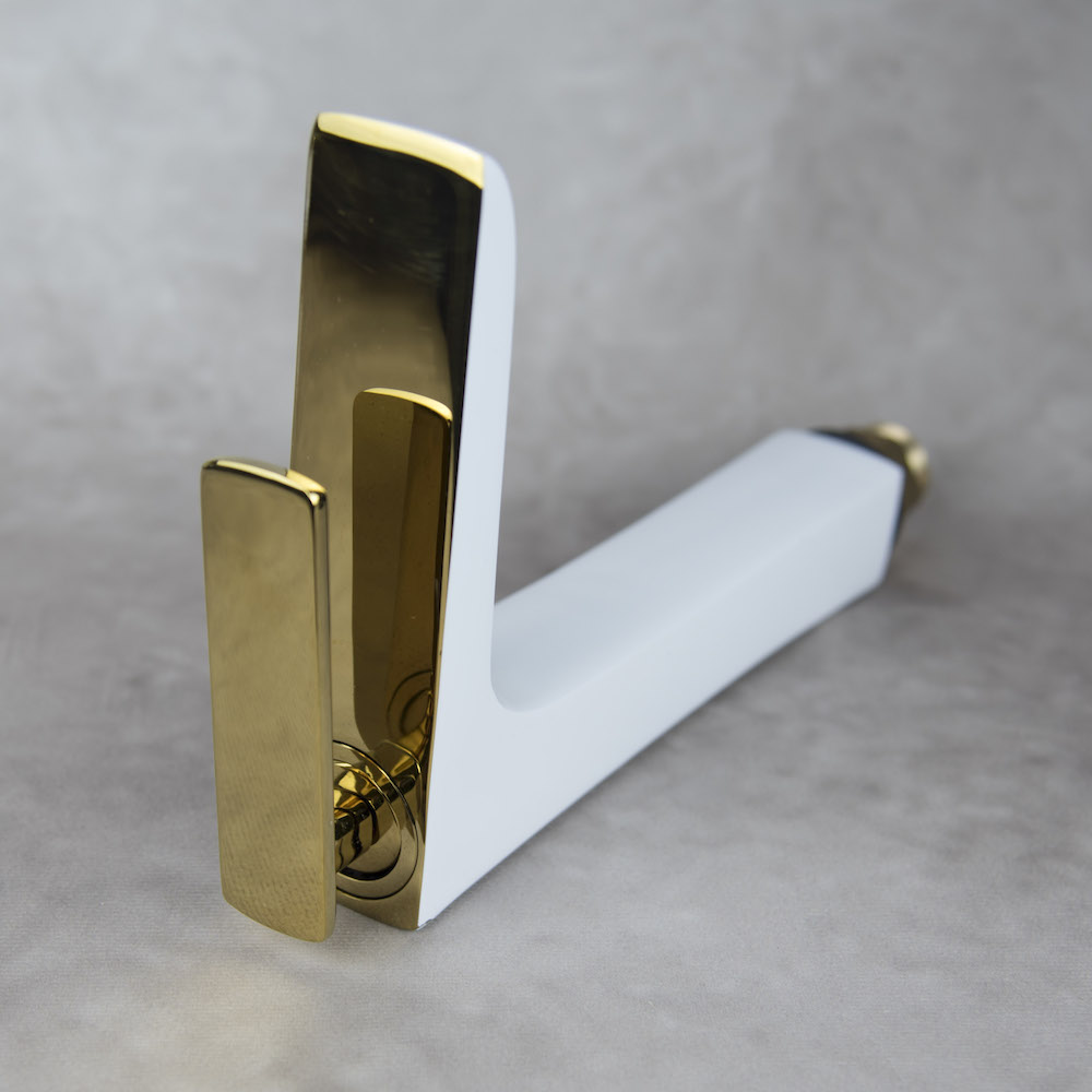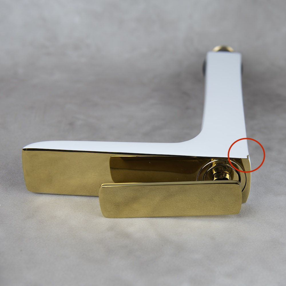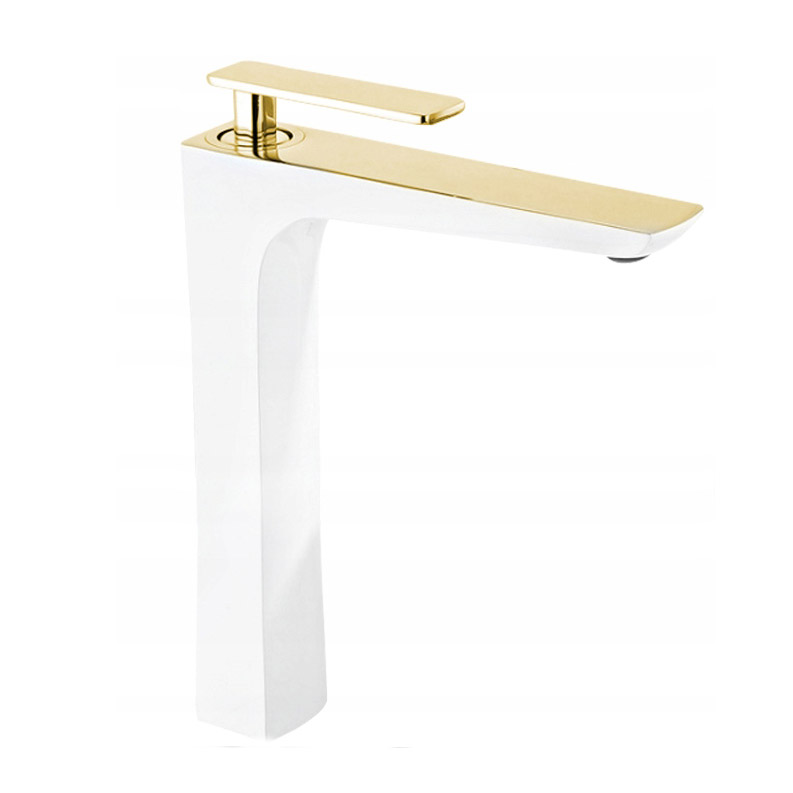 Moderná stojatá umývadlová batéria v bielo zlatej farbe – 2.AKOSŤ – Kozmetická vada (jemná preliačenina na rohu batérie)