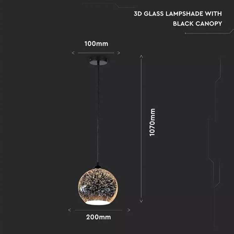 Moderné závesné svietidlo z kolekcie 3D Fireworks na žiarovky typu E27 je svietidlo určené na stenu v dekoračnom vzhľade. Kolekcia 3D FIREWORKS je kolekcia dekoračných svietidiel, ktoré dokážu vytvoriť nádherné osvetlenie pre Vašu domácnosť, party, svadbu a podobne. Kolekcia dekoratívnych svietidiel obsahuje 3D farebný efekt. Svietidlo ponúka unikátny dizajn a poskytuje 3D efekt, efekt ohňostroja. Spestrite svoje osvetlenie v podniku alebo vo vašej domácnosti. S kolekciou svietidiel 3D FIREWORKS bude Váš podnik bezkonkurenčný a nádherný.