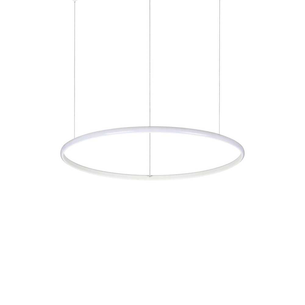 Moderný závesný LED luster HULAHOOP SP D060 má kovovú stropnú rozetu a rám s práškovým nástrekom v bielom prevedení. Opálový gumový difúzor. Oceľové laná so stropnými podperami. Priehľadný elektrický kábel z PVC.