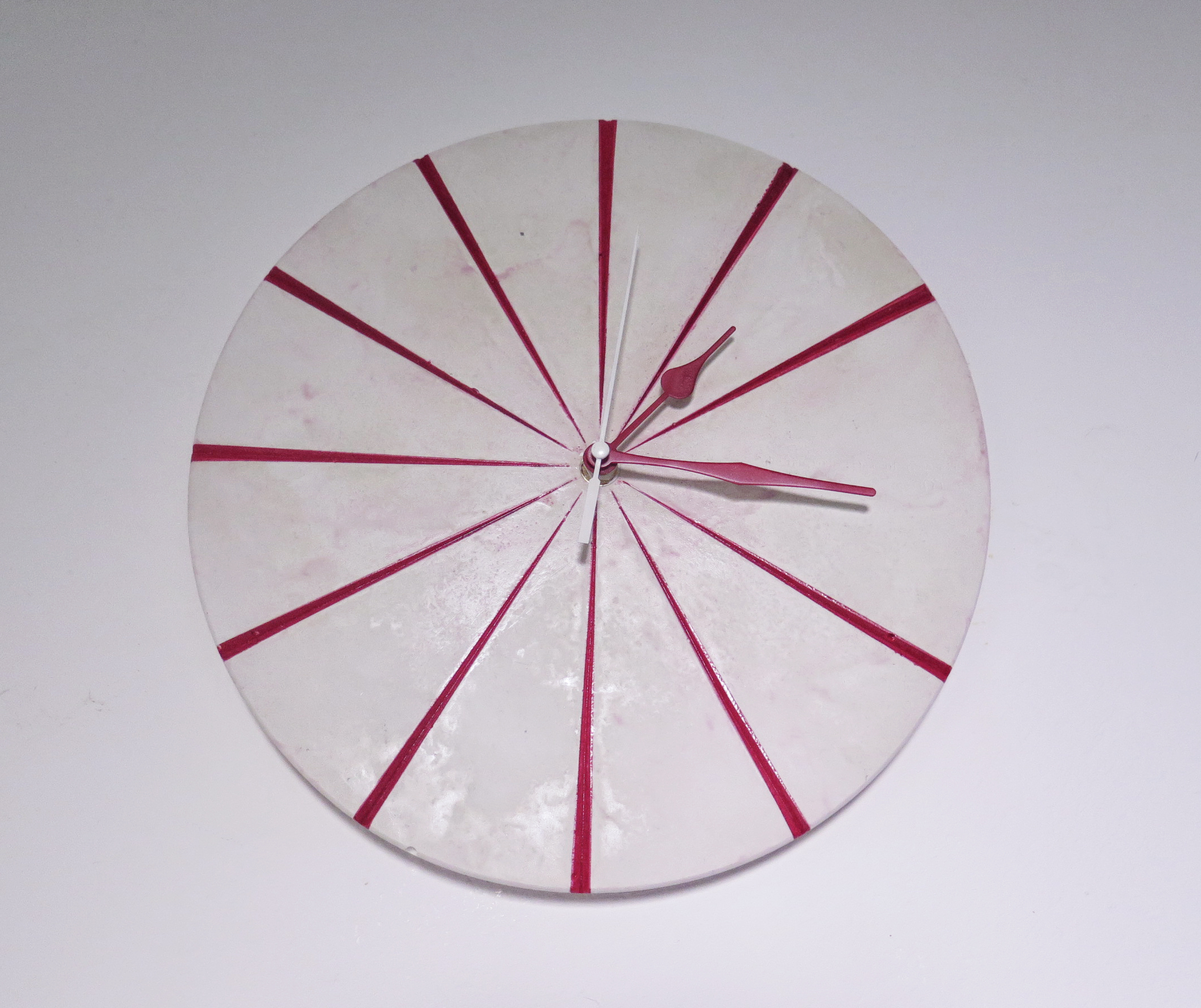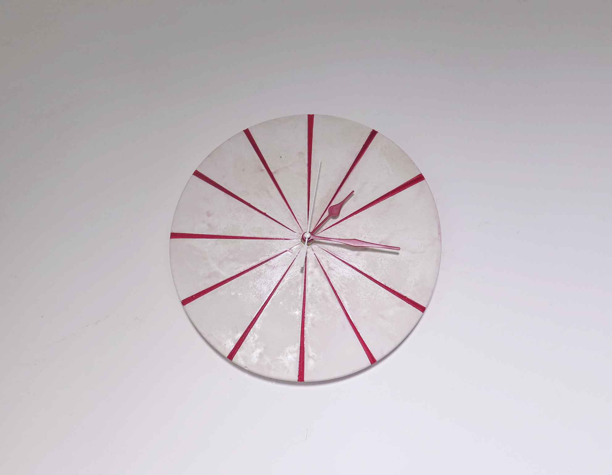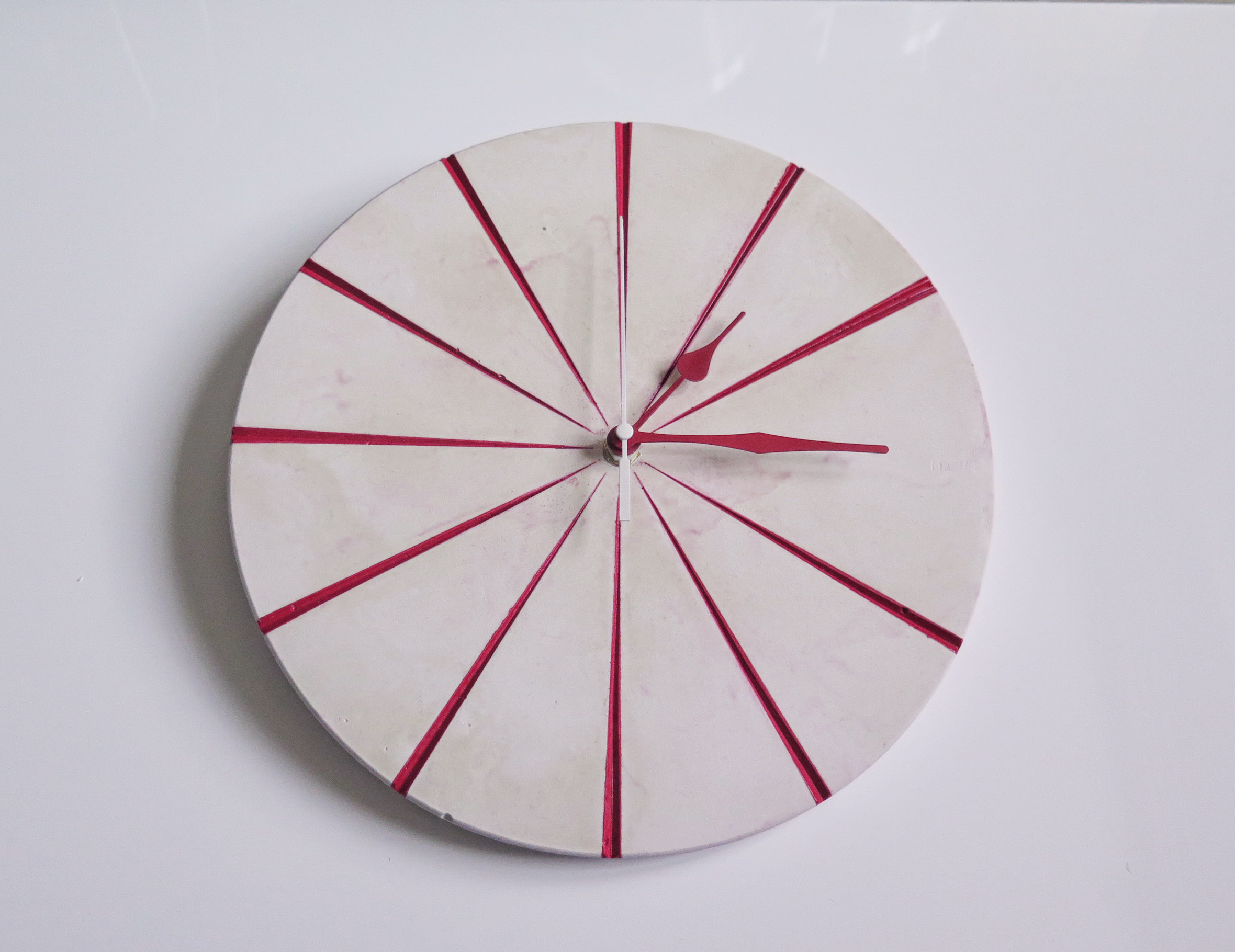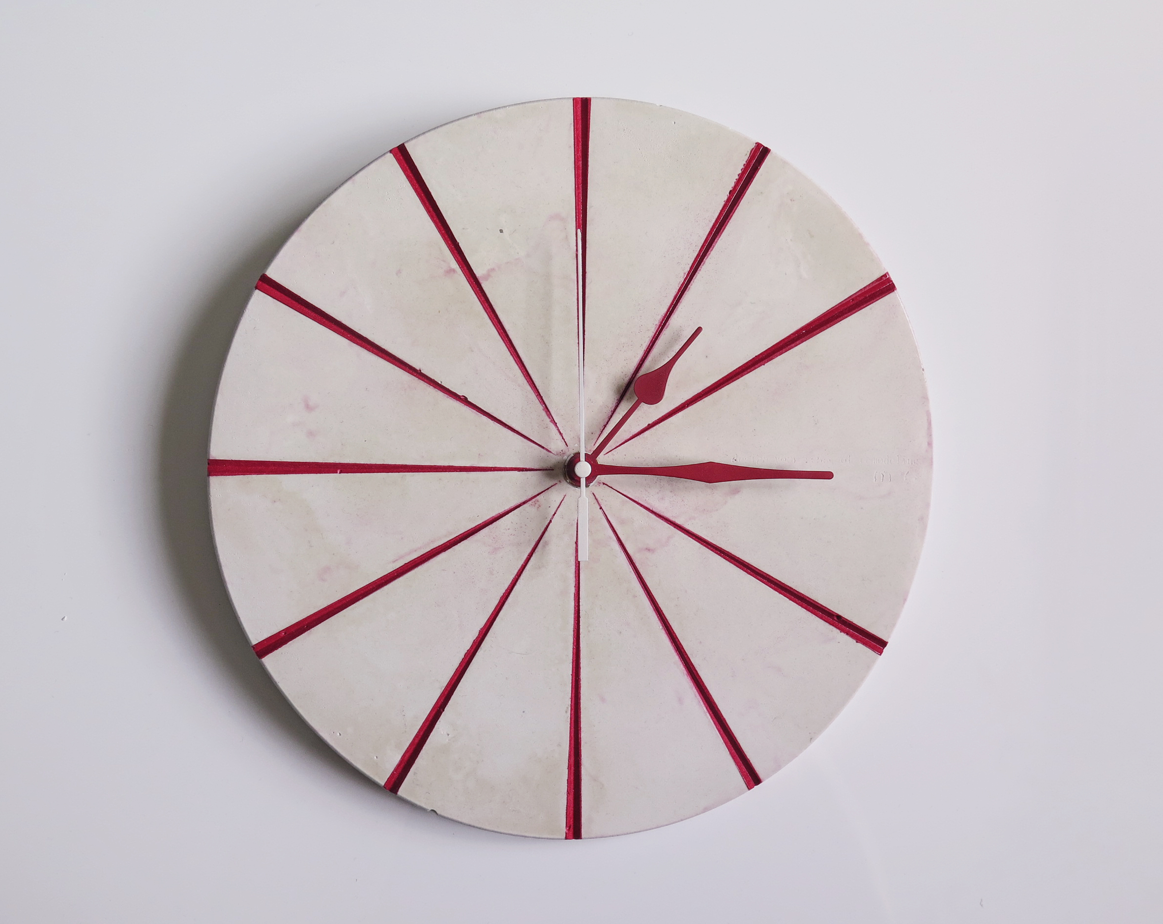 Nástenné hodiny – Red marble sú precíznou imitáciou mramoru. Červený mramor umocnený červenou farbou v 12-tich ryhách po obvode spolu s ručičkami vytvárajú dokonalú harmóniu.