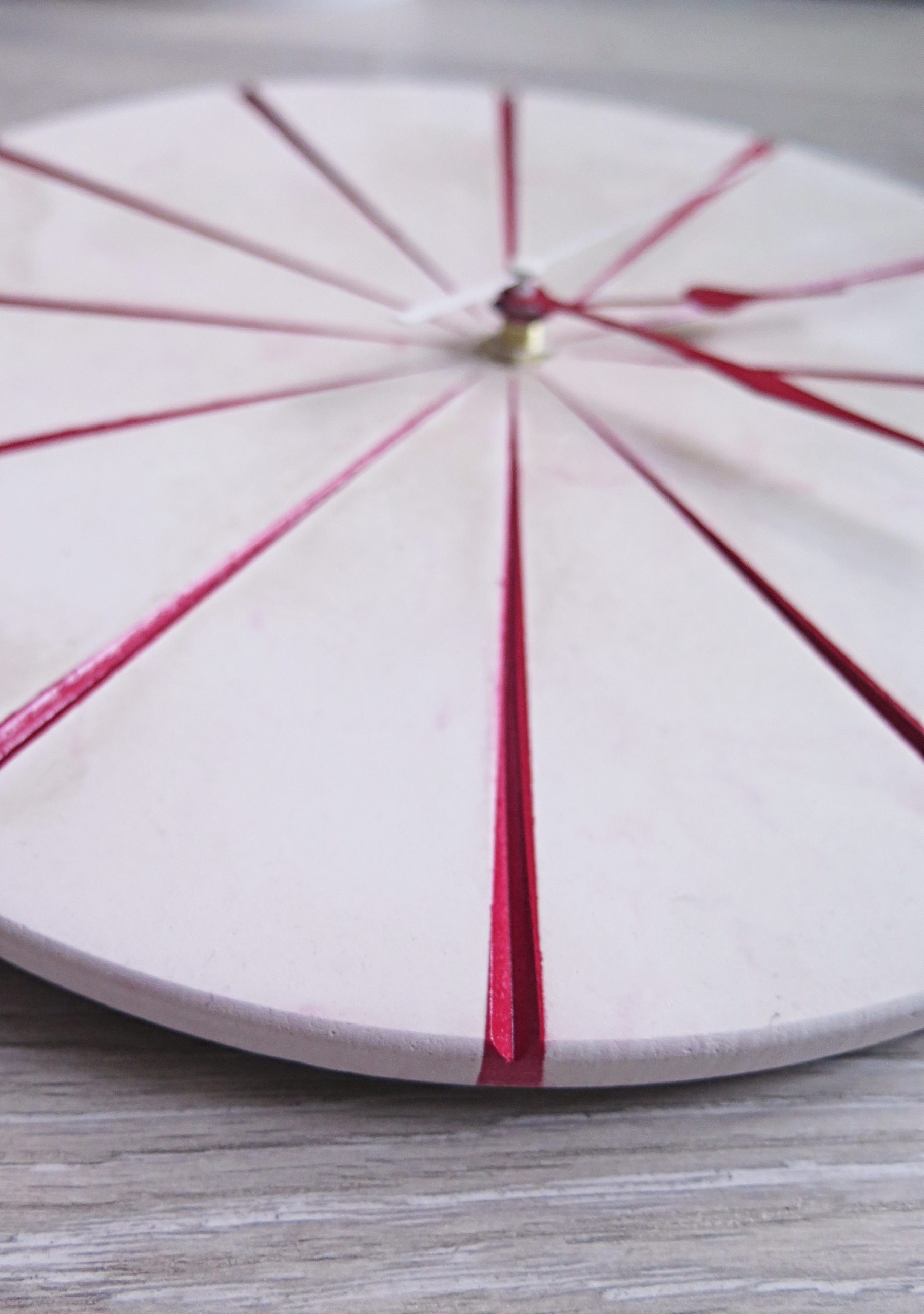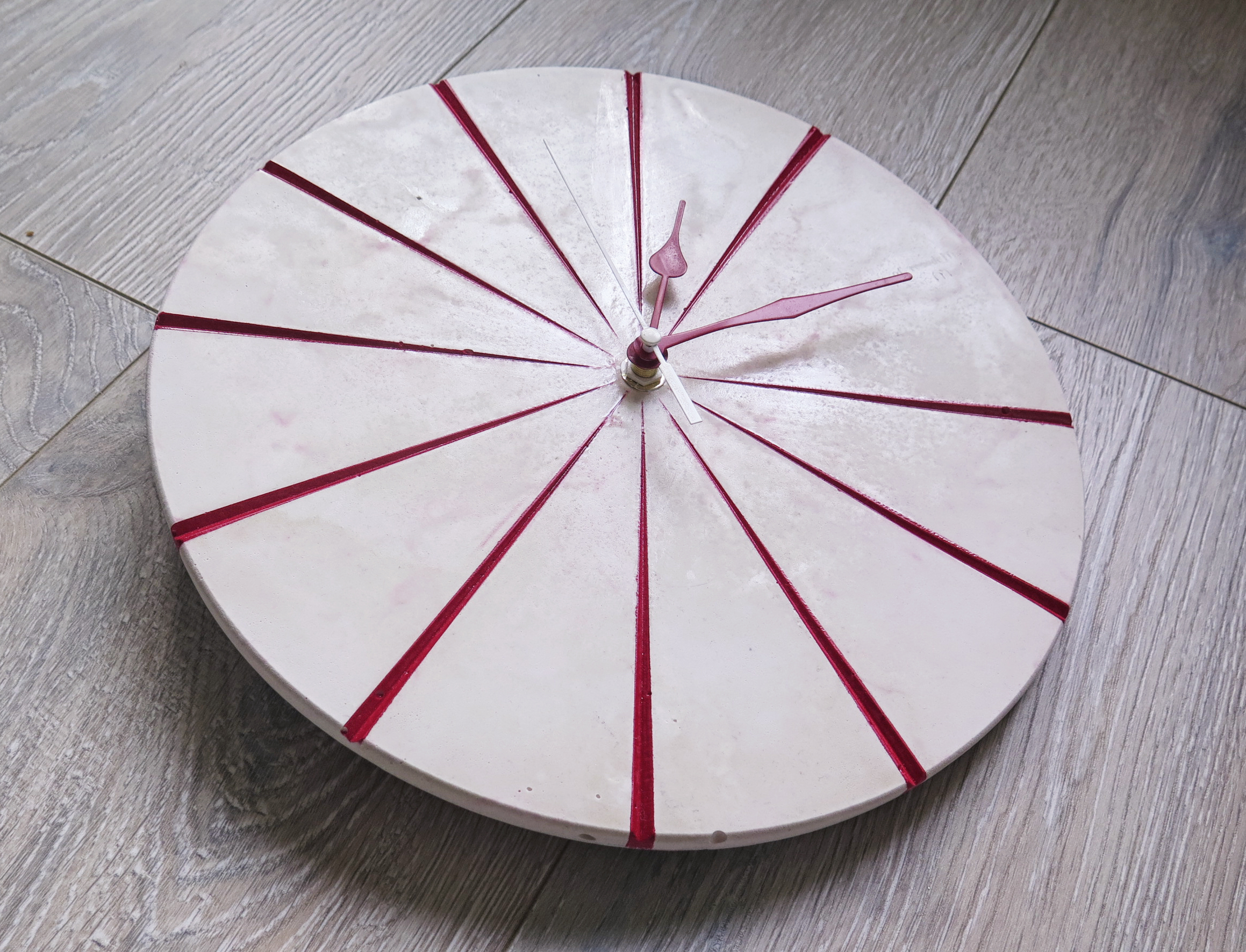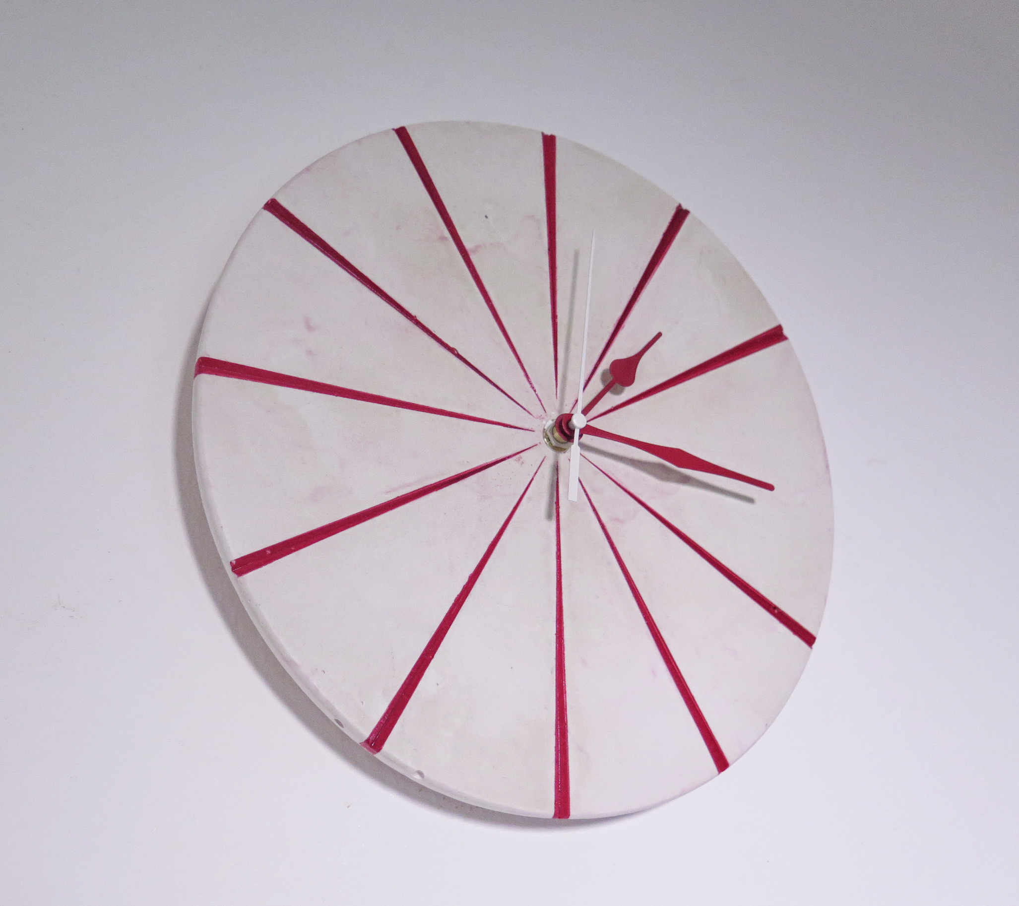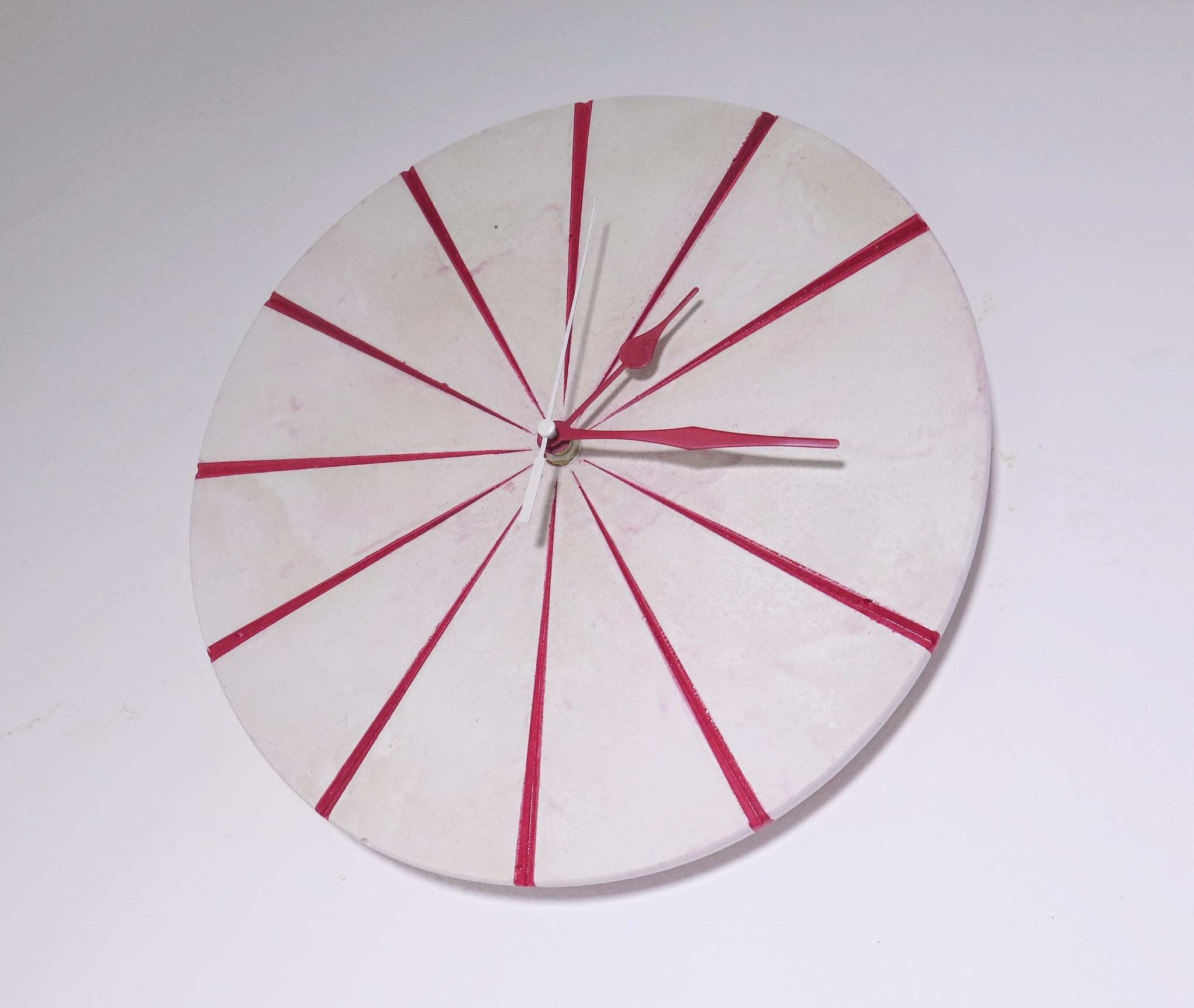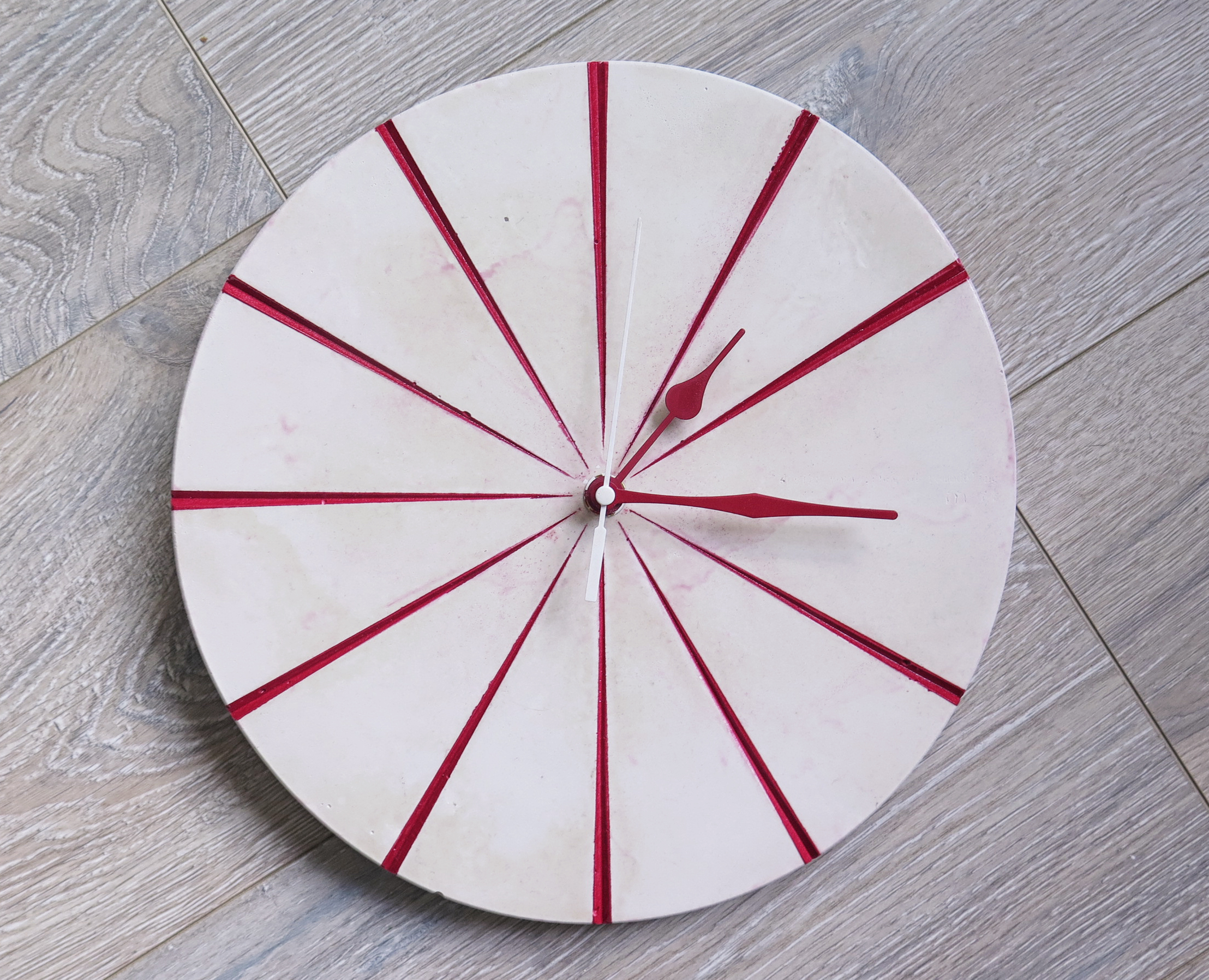 Nástenné hodiny – Red marble sú precíznou imitáciou mramoru. Červený mramor umocnený červenou farbou v 12-tich ryhách po obvode spolu s ručičkami vytvárajú dokonalú harmóniu.