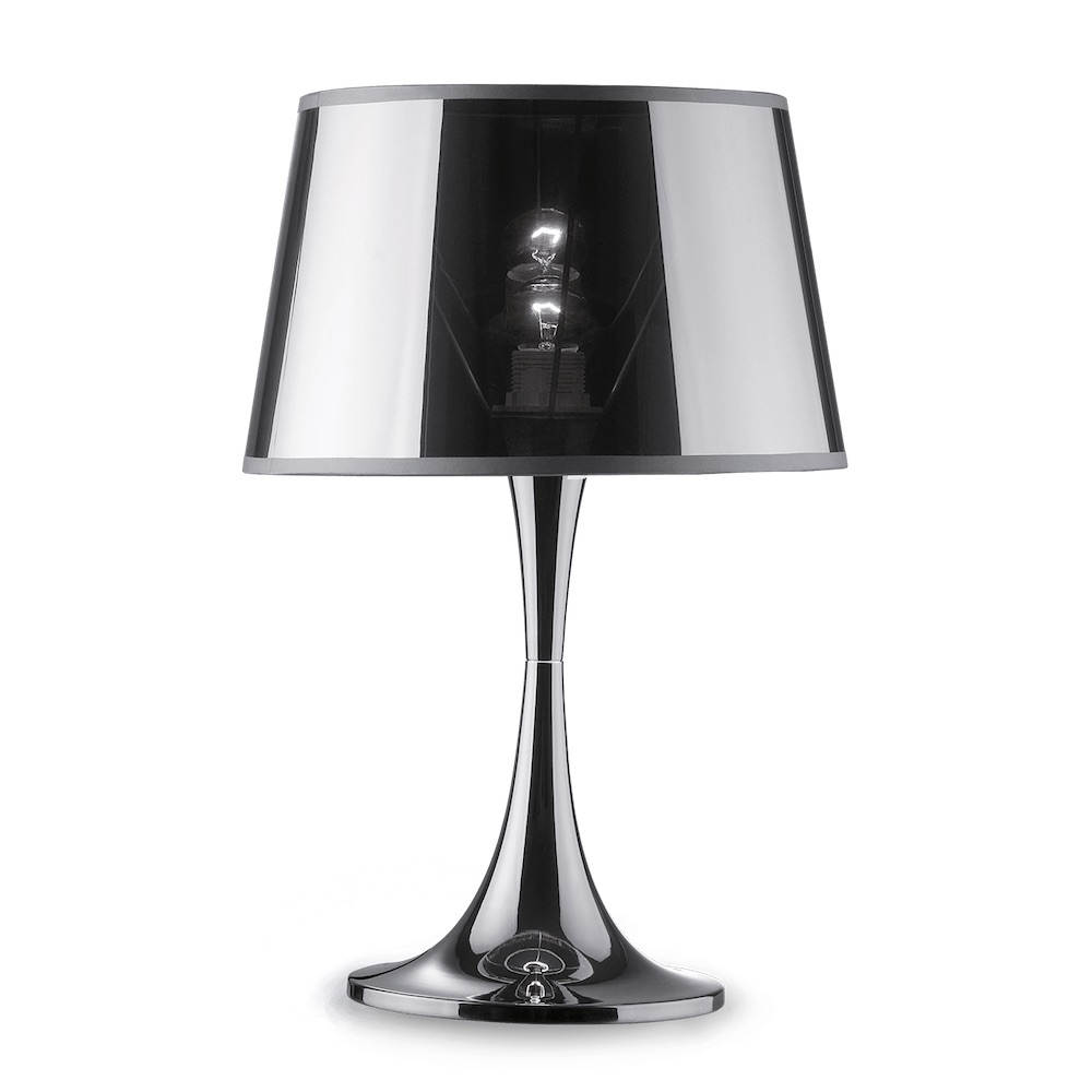 Stolové svietidlo LONDON CROMO TL1 BIG v chrómovej farbe má ľahké kovové telo. Tienidlo svietidla je potiahnuté ohňovzdornou PVC fóliou. Toto svietidlo bude ozdobou Vášho interiéru.