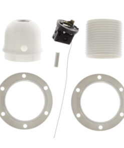 Termoplastová objímka E27 s ťahacím vypínačom a krúžkami pre tienidlo. Vypínač umožňuje zapínanie a vypínanie svetla priamo na objímke, vďaka čomu z nej môžete vyrobiť závesnú alebo stolnú lampu s vlastným spínačom. Vyrobená v Taliansku a je certifikovaná v súlade s najprísnejšími európskymi normami (IMQ-ENEC).