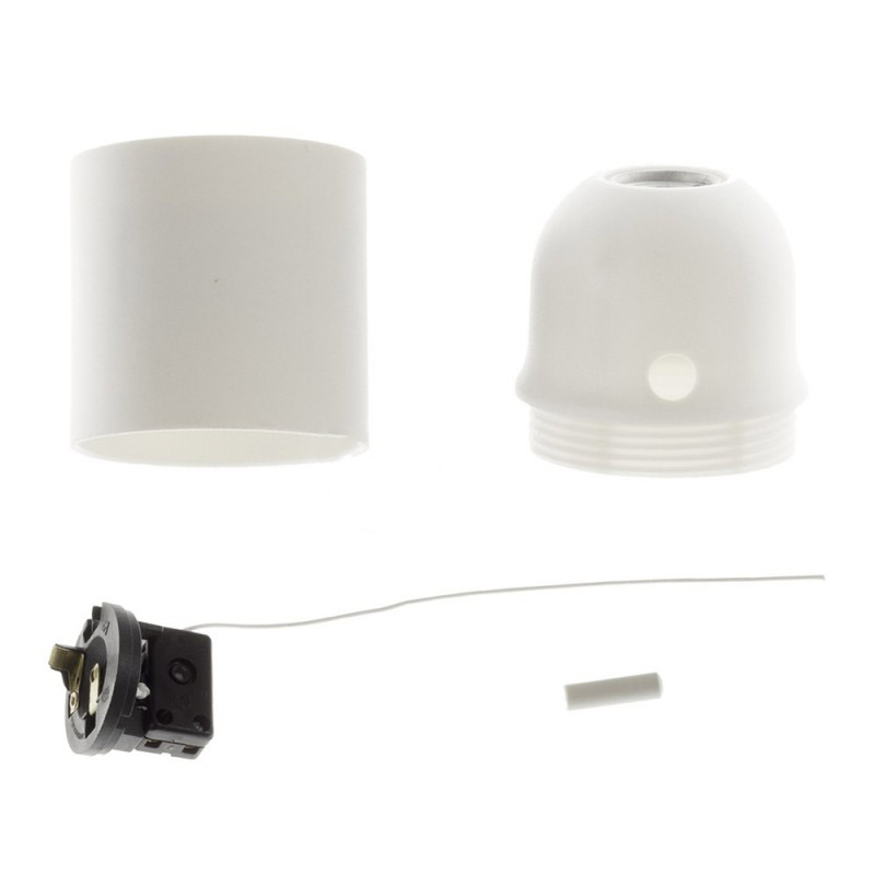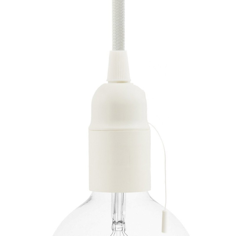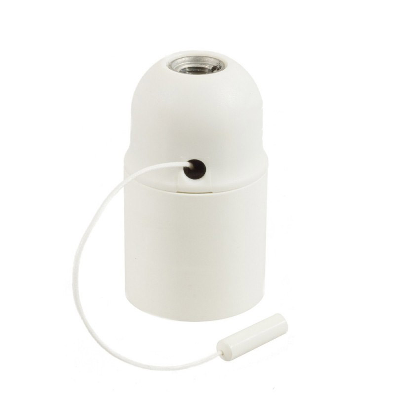 Termoplastová objímka E27 s ťahacím vypínačom v bielej farbe. Vypínač umožňuje zapínanie a vypínanie svetla priamo na objímke, vďaka čomu z nej môžete vyrobiť závesnú alebo stolnú lampu s vlastným spínačom. Vyrobená v Taliansku a je certifikovaná v súlade s najprísnejšími európskymi normami (IMQ-ENEC).