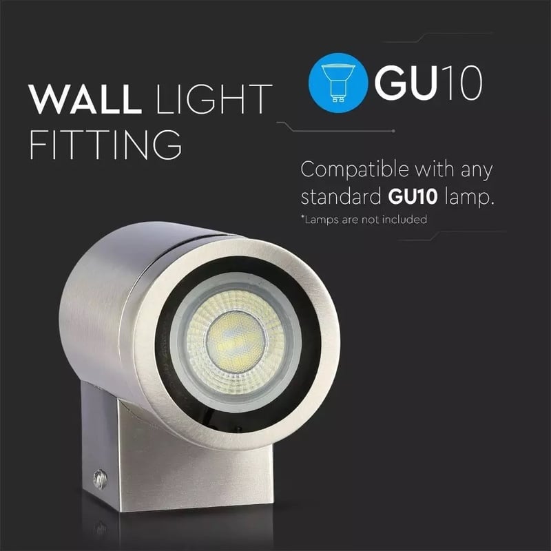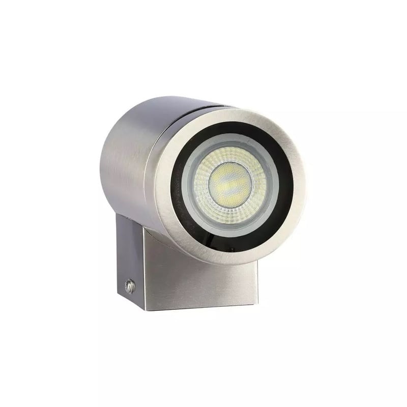 Vonkajšie nástenné svietidlo GU10 s oceľovým saténovým telom, IP44. Celá konštrukcia z antikoróznej nehrdzavejúcej ocele s vnútornými reflexnými parabolami a ochranným sklom (kalené). Praktické a efektívne riešenie pre osvetlenie chodníkov, záhrad a priechodov pre chodcov. Jednoduchá montáž a použitie vďaka skrutkovému pripojeniu. Súčasťou balenia sú skrutky s hmoždinkami pre montáž na stenu. Vynikajúce riešenie pre osvetlenie vonkajšieho prostredia umožňujúce úsporu energie až 80 % v porovnaní s ekvivalentnou halogénovou žiarovkou a s menšou údržbou