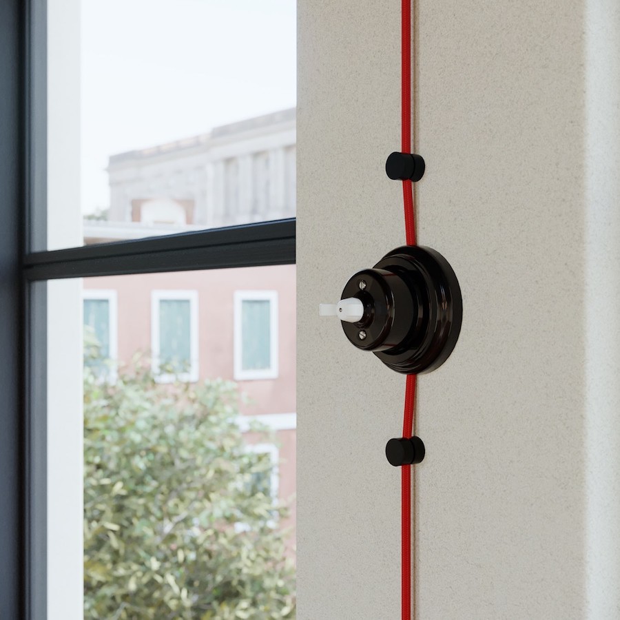 Čierny porcelánový Vypínač/prepínač so škrtiacou klapkou je dokonalým doplnkom, ktorý dodá jedinečný retro nádych akémukoľvek odkrytému elektrickému systému. Tento komponent sa používa na zapínanie a vypínanie jedného svetla z viacerých bodov pomocou otáčania matice.