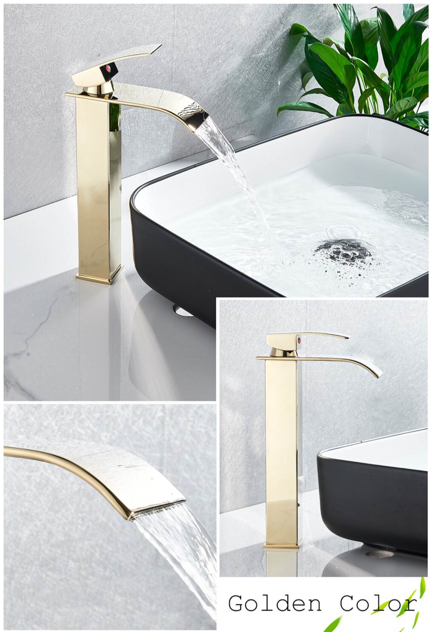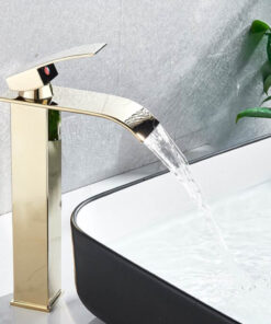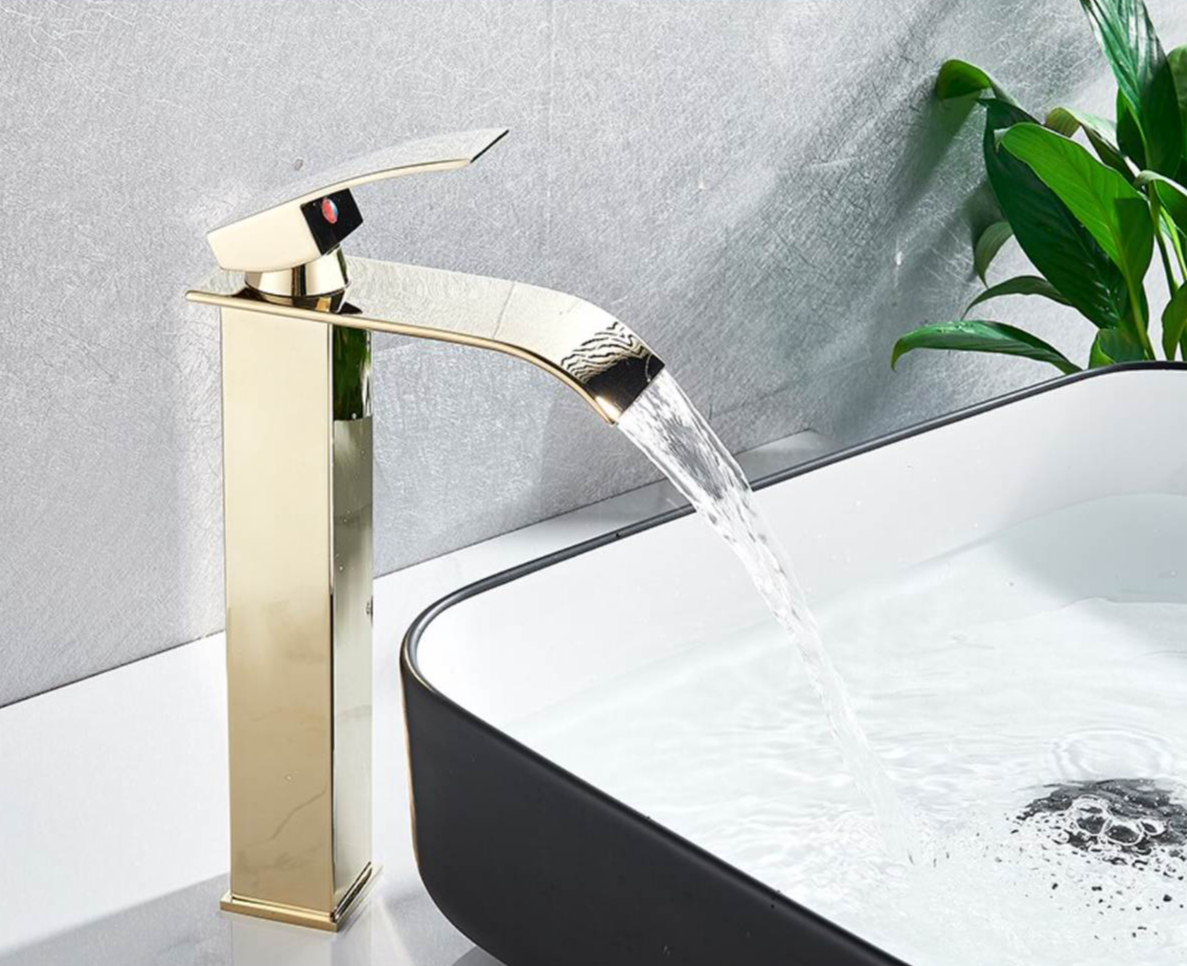 Vysoká vodovodná batéria s vodopádom – zlatá farba