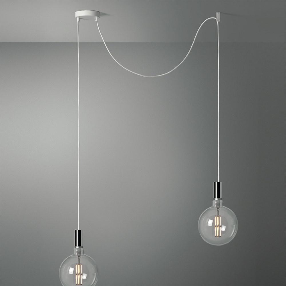 Závesné svietidlo MILANO je svetelné riešenie pozastavajúce s 2 pätíc v bielej farbe. Vhodné pre spálne, kuchyne a iné miestností, ktoré je potrebné osvetliť a oživiť. Toto riešenie osvetľuje priestor diskrétnosťou a jednoduchosťou pri skromných nákladoch. Môžete si vybrať medzi teplejším svetlom s vysokou kvalitou svetla alebo jasnejším svetlom. V obidvoch prípadoch je možné meniť intenzitu svetla pomocou stmievačov (je potrebné disponovať zabudovaným stmievačom alebo ho dokúpiť). 2 Závesné svietidlá vychádzajúce zo stropnej rozety s 2 žiarovkami. Obzvlášť vhodné pre stredné prostredia, ako sú haly, presiene, spálne. Môžete si vybrať rôzne modely z elegantne navrhnutých žiaroviek s mimoriadnym vizuálnym komfortom. Tieto kombinácie sa vyznačujú žiarovkami s povrchovou úpravou podobnou porcelánu, ktoré dávajú štruktúre veľmi rafinovaný vzhľad a majú rozptýlený, rovnomerný, veľmi relaxačný a zároveň intenzívny svetelný efekt. Žiarovky s povrchovou úpravou podobnou krištáľu majú žiarivejšie, živšie a ostrejšie svetlo. Obidve riešenia ponúkajú vysoké farebné podanie a možnosť zmeny intenzity svetla ( v prípade že máte zabudovaný vlastný stmievač alebo si dokúpite stmievač z nášho sortimentu).